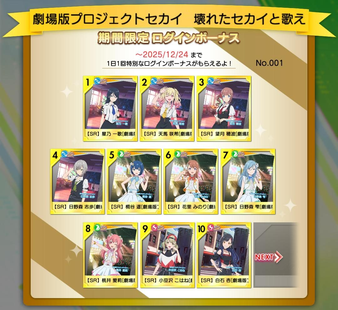 「劇場版プロジェクトセカイ 壊れたセカイと歌えないミク イベント開催記念ログインボーナス」を開催します!