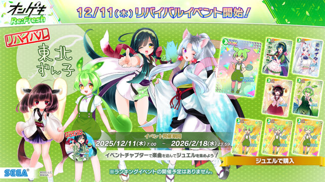 ※「東北ずん子(リバイバル)」イベントについては、ランキングイベントの開催予定はありません。