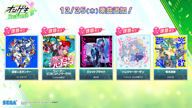イベント開催と同時に新曲「最愛人生ランナー」「ウィーアーピコピコハンマーズ!!!!」「ジェットブラック」「トレジャーガーデン」「電光刹歌」を追加!