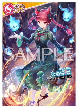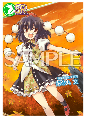 | 【R】橙[東方妖々夢] 【R】魂魄 妖夢[東方妖々夢] 【R】西行寺 幽々子[東方妖々夢] 【R】八雲 藍[東方妖々夢] 【R】八雲 紫[東方妖々夢] 【SR】橙[すきま妖怪の式の式] 【SR】魂魄 妖夢[半人半霊の庭師] 【SR】西行寺 幽々子[幽冥楼閣の亡霊少女] 【SR】八雲 藍[すきま妖怪の式] 【SR】八雲 紫[幻想の境界] 【SSR】西行寺 幽々子[桜符「完全なる墨染の桜 -開花-」] 【SSR】アリス・マーガトロイド[咒詛「首吊り蓬莱人形」] |