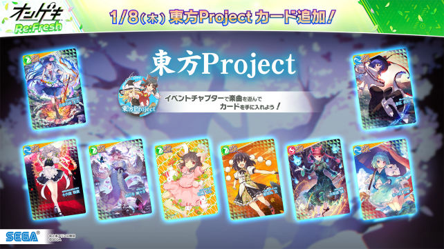 「東方Project」チャプターには、ジュエル交換で手に入るカードとして、
