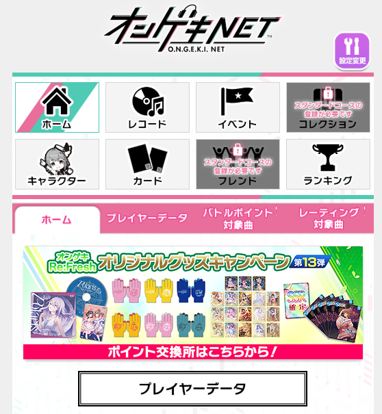貯まったポイントは「オンゲキ-NET」ホームから「グッズキャンペーン」ページで確認!