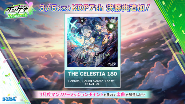 3/5(木)に「KING of Performai The 7th」決勝楽曲として登場した「THE CELESTIA 180」が追加!