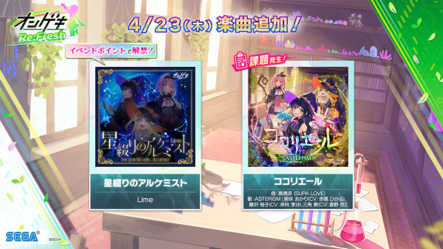 4/23(木)より、以下の楽曲を通常開放します!